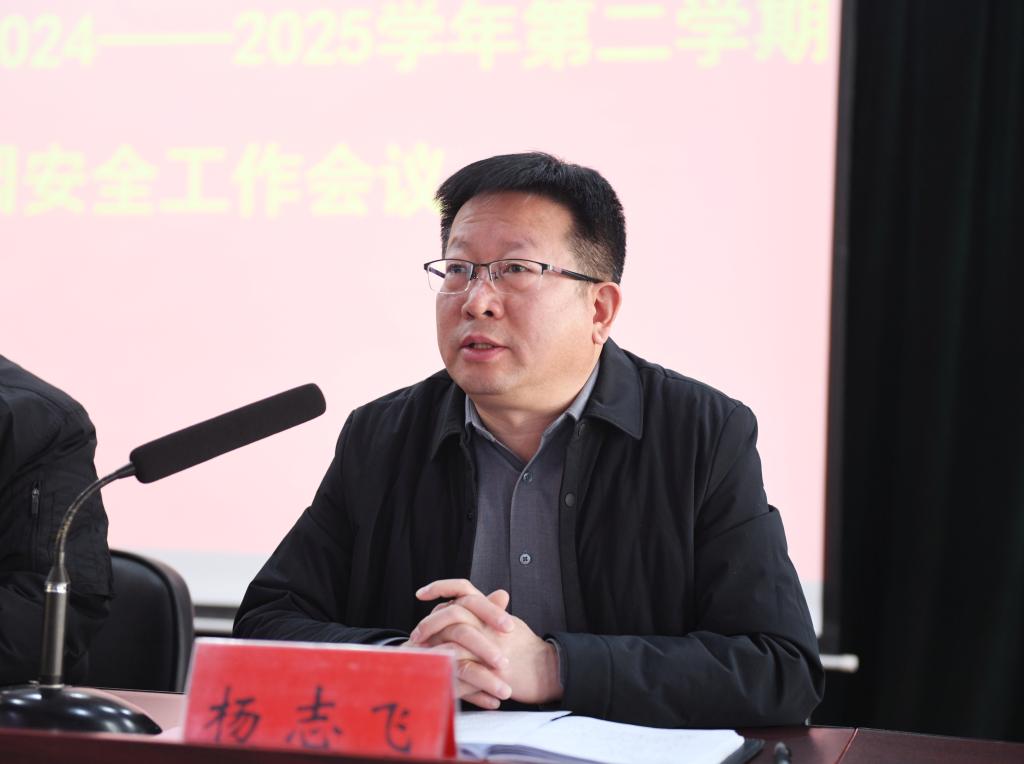 副校长杨志飞针对学生安全管理过程中存在的问题进行了详细分析和工作部署。他指出,学生安全是校园安全的核心,班主任和任课教师要加强对学生的安全教育,重点关注学生心理健康、校园欺凌、交通安全等问题。各部门要加强协作,形成合力,将安全意识贯穿于教育教学和日常管理的全过程,确保学生安全管理工作落到实处。